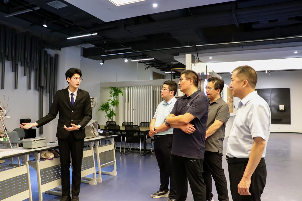 孙洋海一行还实地参观了我校图书馆、实训室及大学生活动中心。